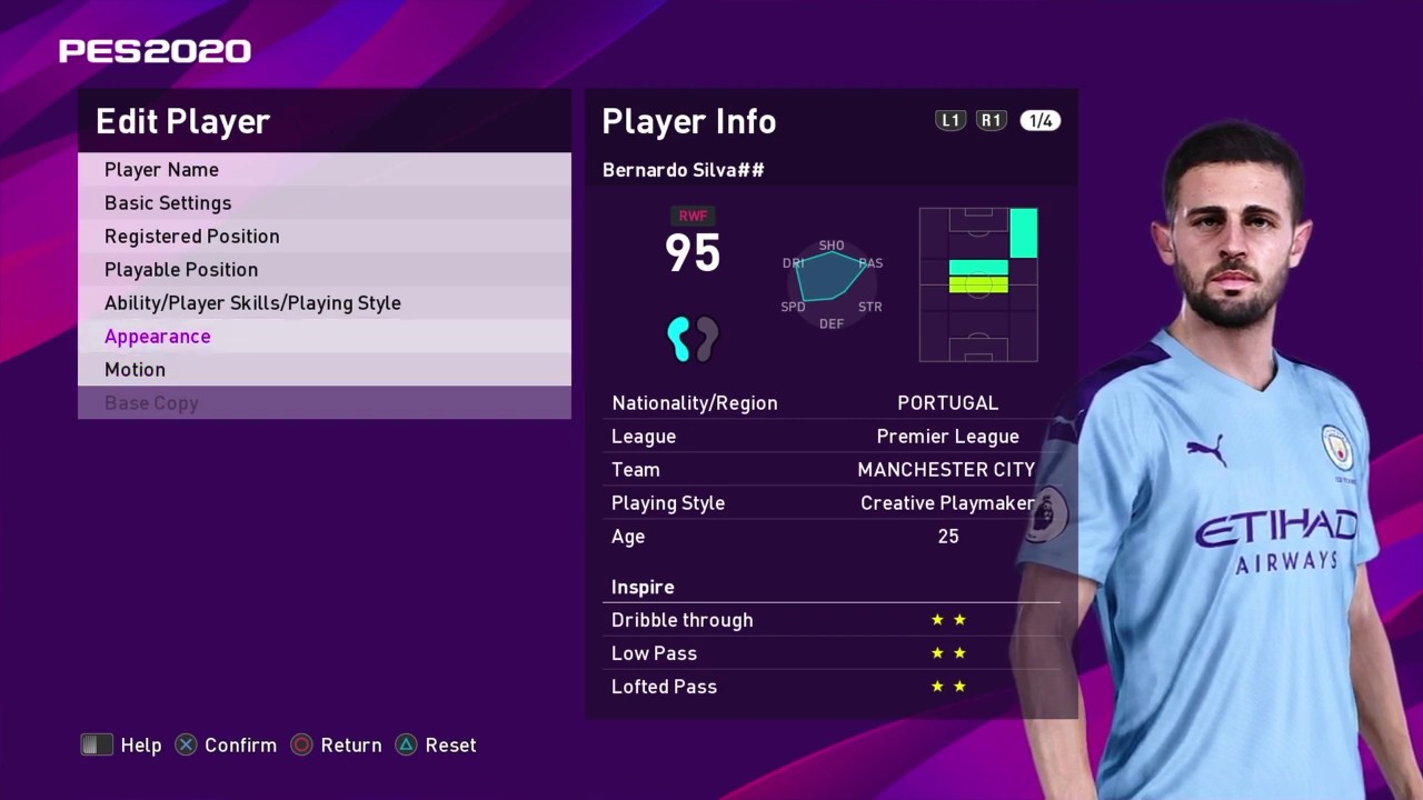 Pes 2020 Stats Bernardo Silva Fm To Pes Youtube